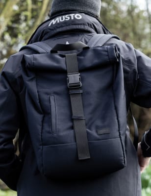 | ZD1990 | Canvas Rolltop Backpack | This canvas backpack from Musto makes a practical choice for outdoor adventures. The brand's DWR coating provides lasting water-repellent properties to keep all your belongings dry. Plus, there's a roll-down top for extra protection. Clip fastenings ensure everything's secure, while padded shoulder straps and built-in handles provide multiple carry options. |